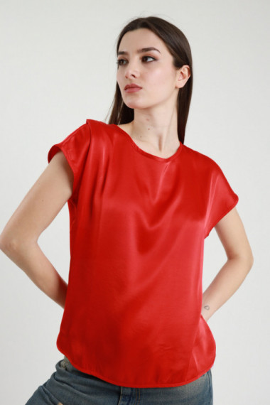 Bluse mit Rundhalsausschnitt und Bündchen aus Viskose mit Satineffekt. 100 % vi