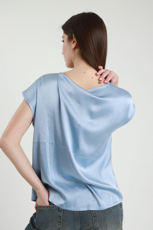Top Satinato in Pizzo con Scollo a V e Spalline Sottili. Fondo Lungo Asimmetrico.