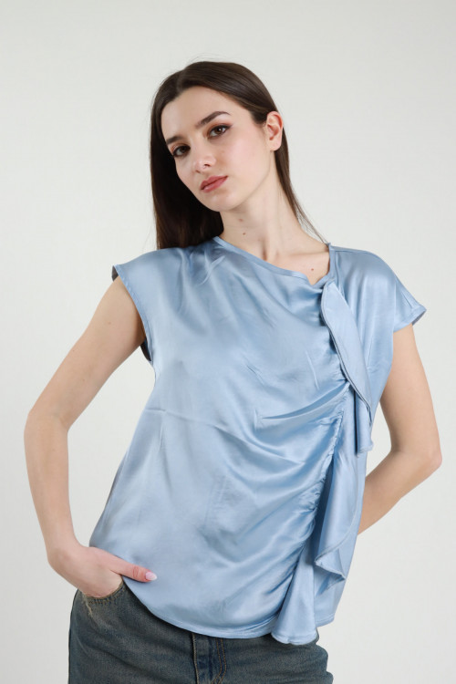 Top a Fascia Asimmetrico, in Ecodainetto, con Chiusura Zip sul Retro.
