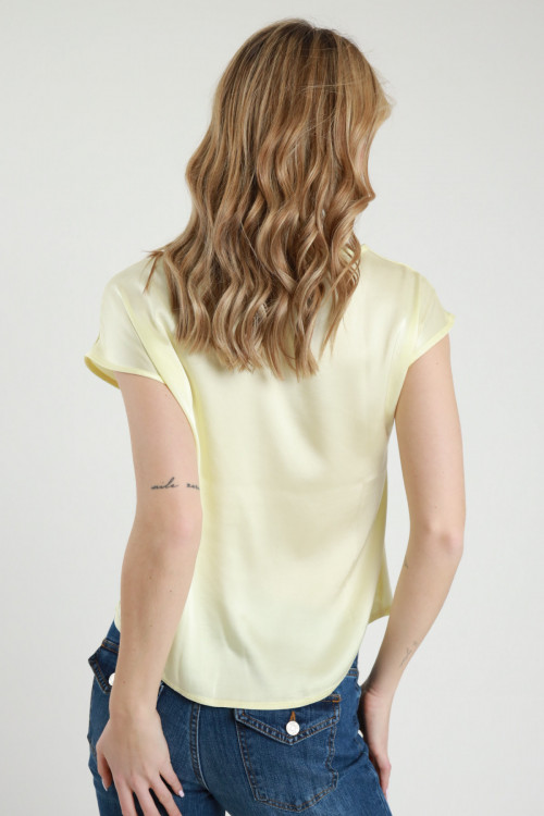 Top Satinato in Pizzo con Scollo a V e Spalline Sottili. Fondo Lungo Asimmetrico.