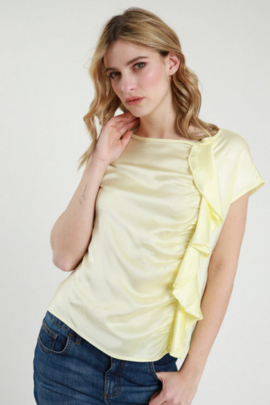 Top a Fascia Asimmetrico, in Ecodainetto, con Chiusura Zip sul Retro.