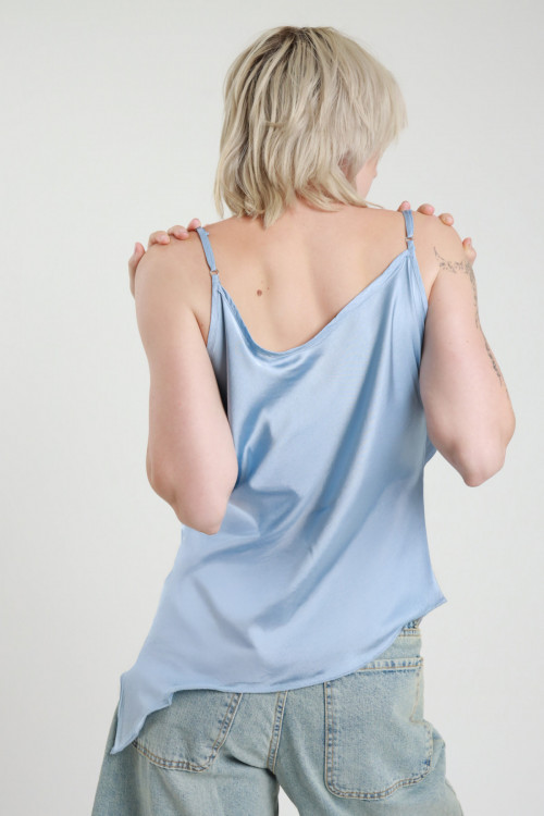 Canotta Con Spalline Asimettriche, Gioiello Sul Fronte Che Forma Arricciatura. Slim Fit.