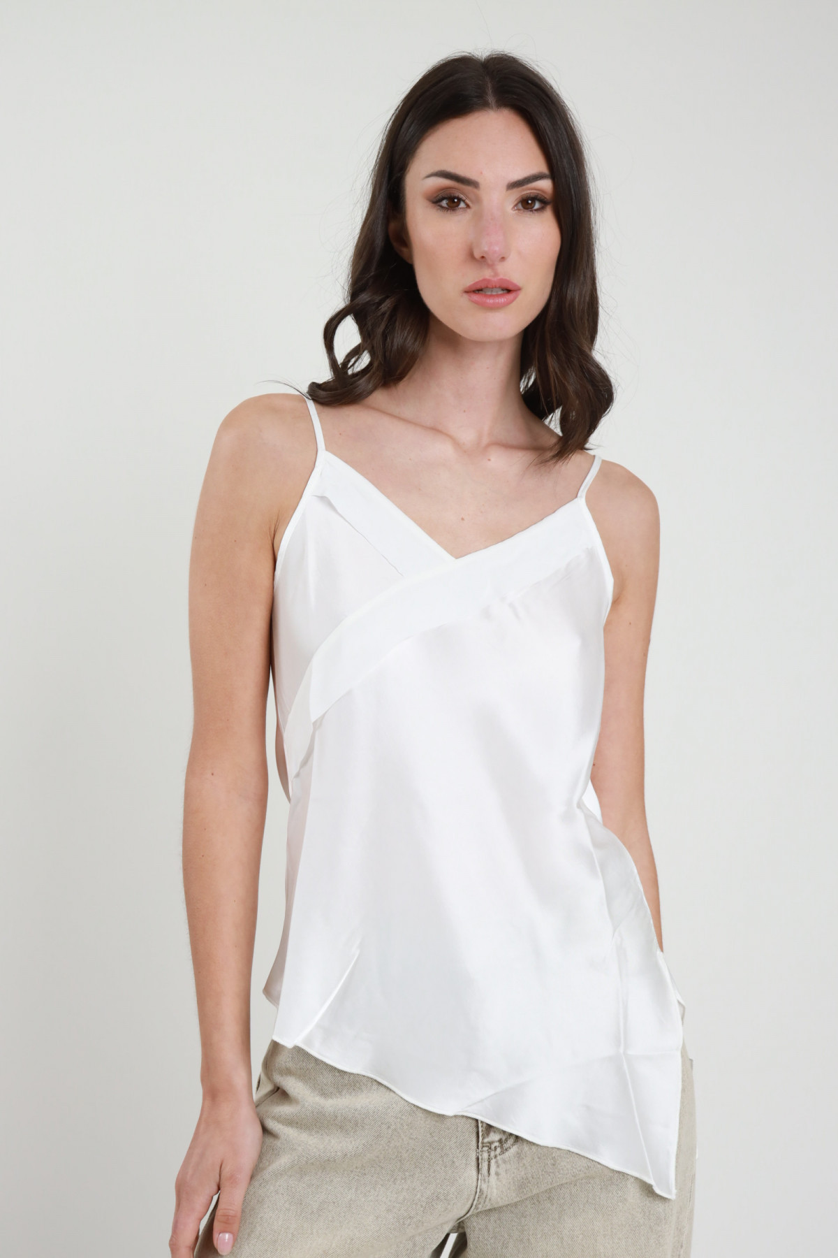 Canotta Con Spalline Asimettriche, Gioiello Sul Fronte Che Forma Arricciatura. Slim Fit.