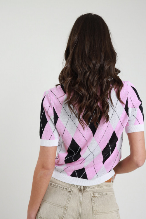 Gestrickte Weste mit Rauten, perforierter Rundhalsausschnitt. 80%co 20%pl