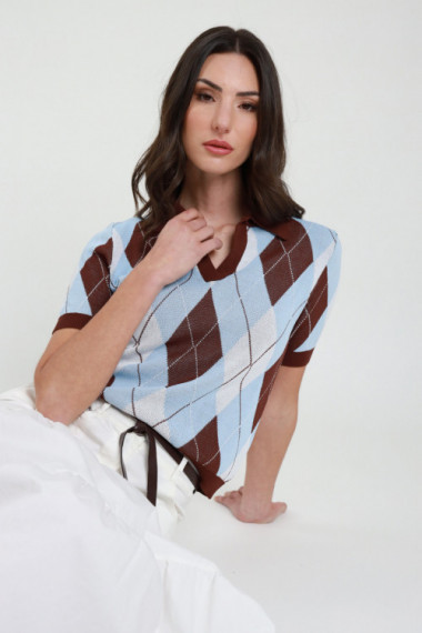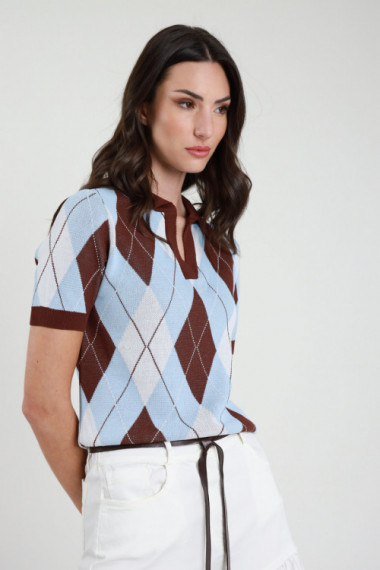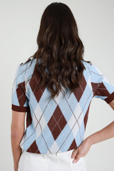 Gestrickte Weste mit Rauten, perforierter Rundhalsausschnitt. 80%co 20%pl