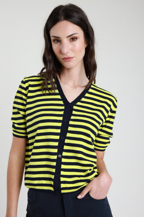 Cardigan rigato m/m 50%co 50%ac