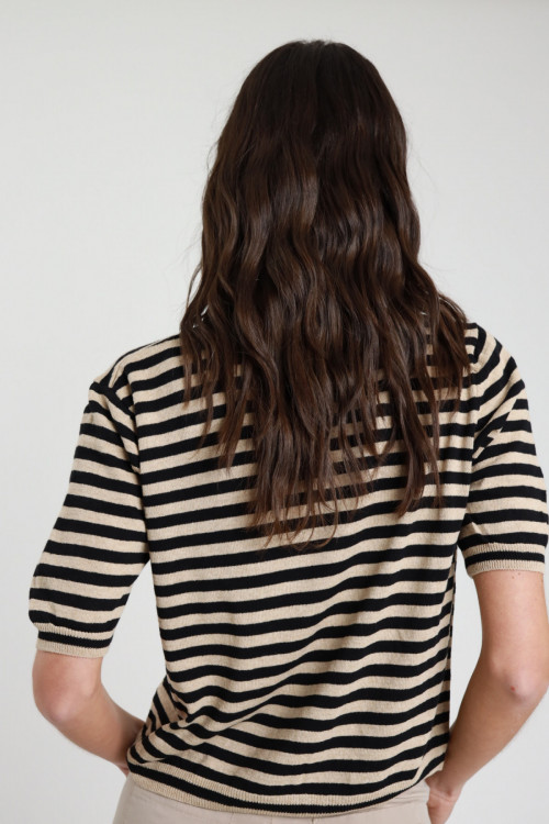Felpa Traforata con Cappuccio e Chiusura Zip, Maniche Ampie con Righe.