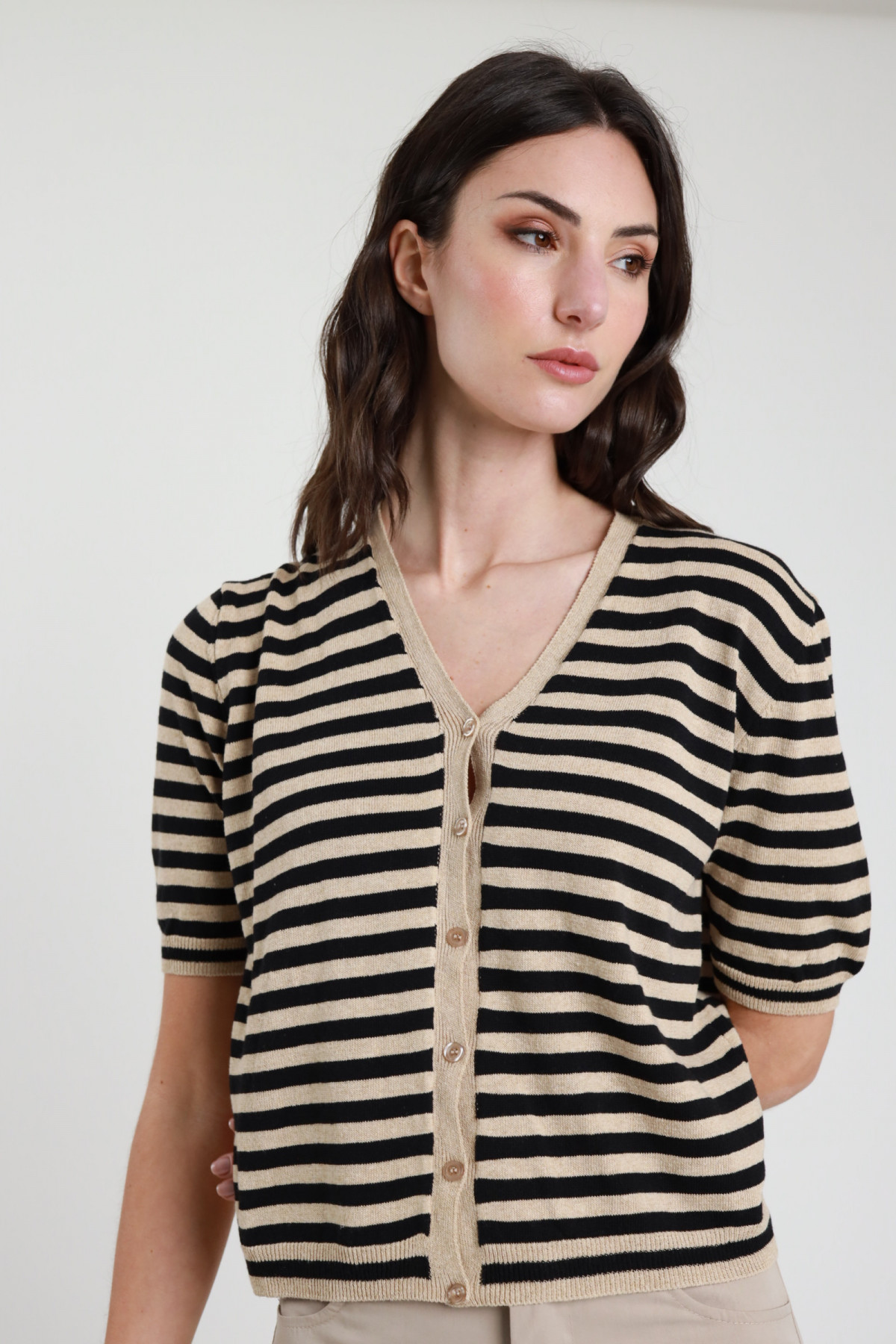 Cardigan Girocollo Con Bottoni Perle, Sfondo Sfrangiato, Regular Fit.