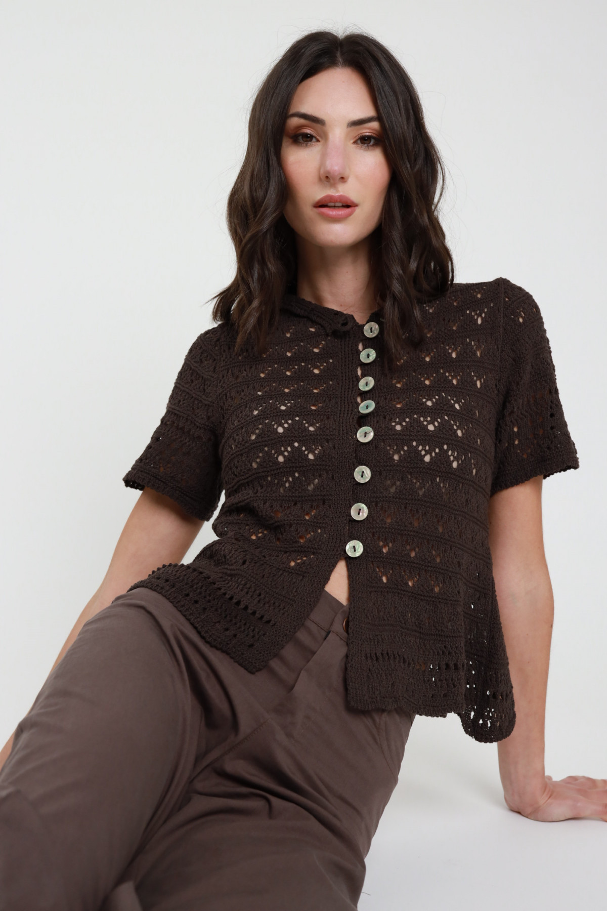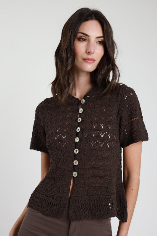 Cardigan traforato c/bottoni 50%co 50%ac