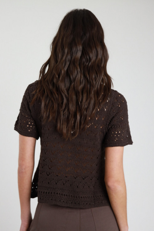 Cardigan Crop Incrociato in Maglia Traforata con Chiusura Lacci.