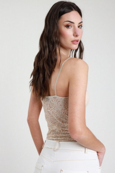 Tanktop mit asymmetrischen Trägern und Schmucksteinen auf der Vorderseite, die Locken formen. Slim-Fit. 95 % pl 5 % Stück