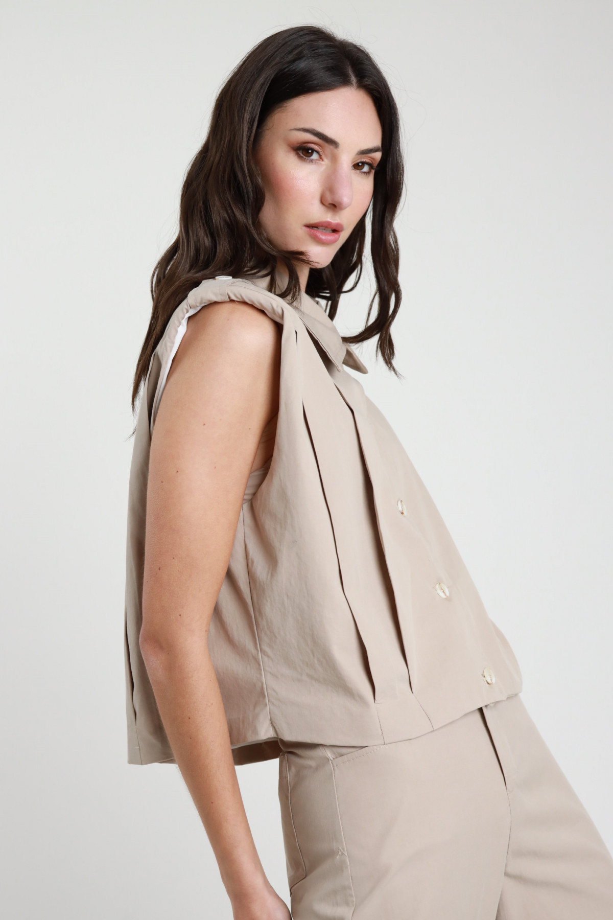Bomber Smanicato con Pieghe su Fronte e Retro, Colletto Camicia.