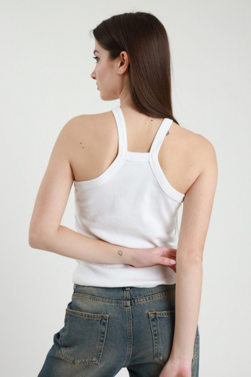 Elastisches, geripptes Tanktop mit quadratischem Ausschnitt. 70 %vi 25 %co 5 %ea