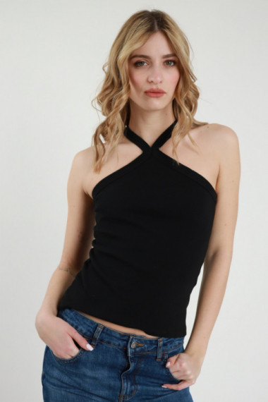 Elastisches, geripptes Tanktop mit quadratischem Ausschnitt. 70 %vi 25 %co 5 %ea