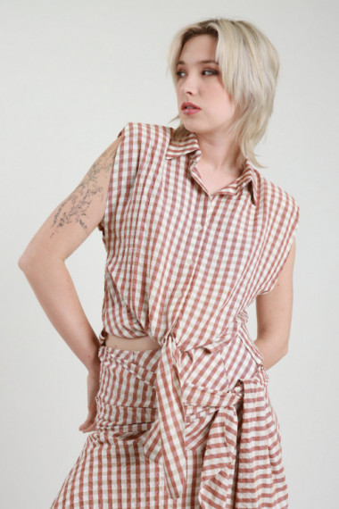 Classic cut shirt with striped stitching on the front, semi-transparent. 85%tn 15%pl