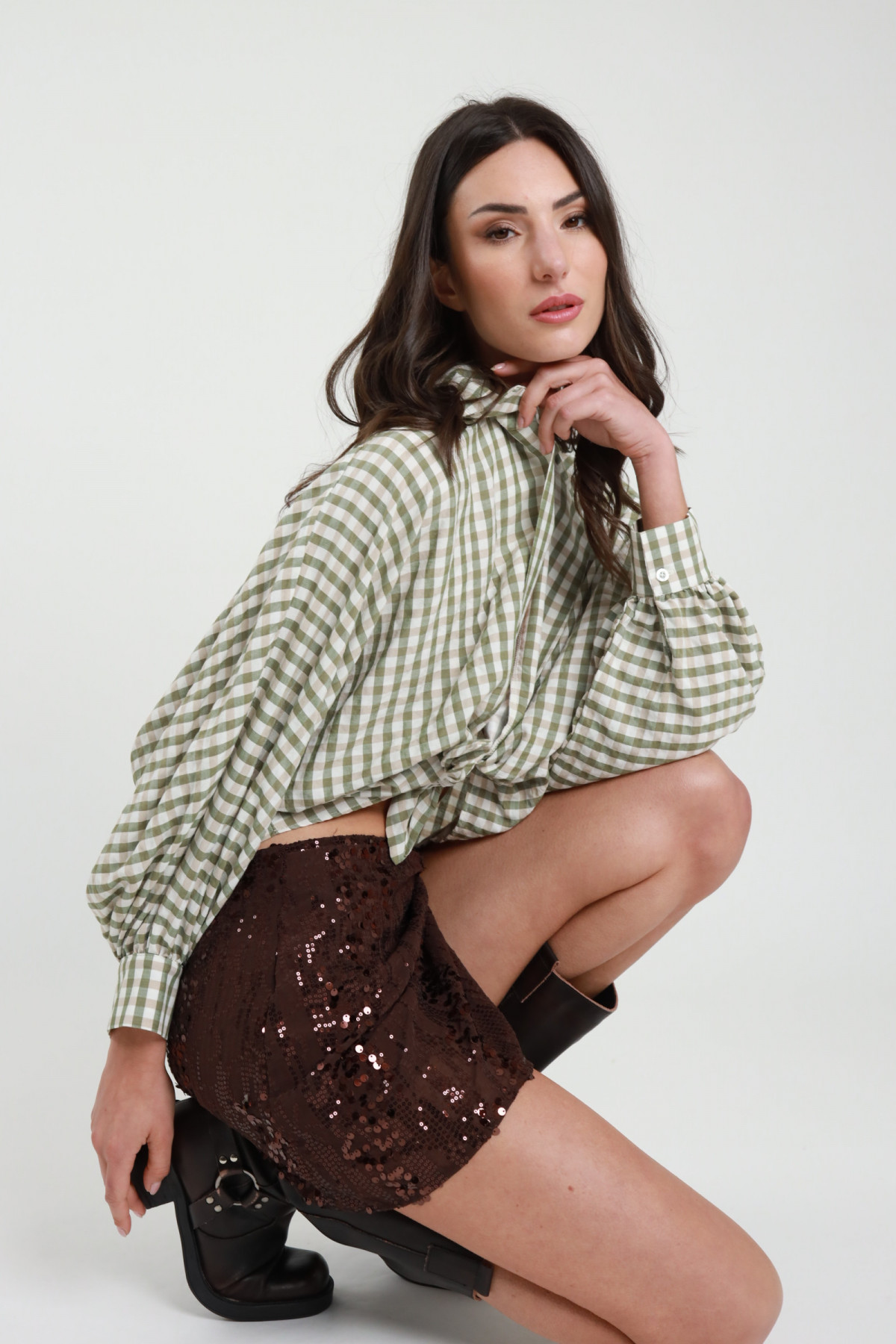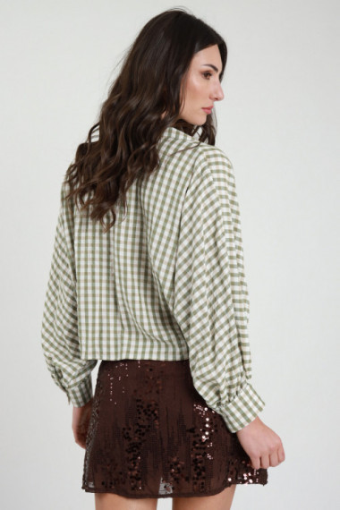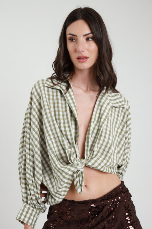 Camicia Smanicata in Fantasia Check con Bottoncini sul Fronte e Nodo sul Fondo.