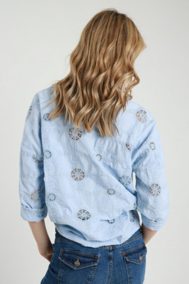 Camicia con Collo Coreana e Ricami Ton sur Ton, Nodo sul Fondo Rimovibile.