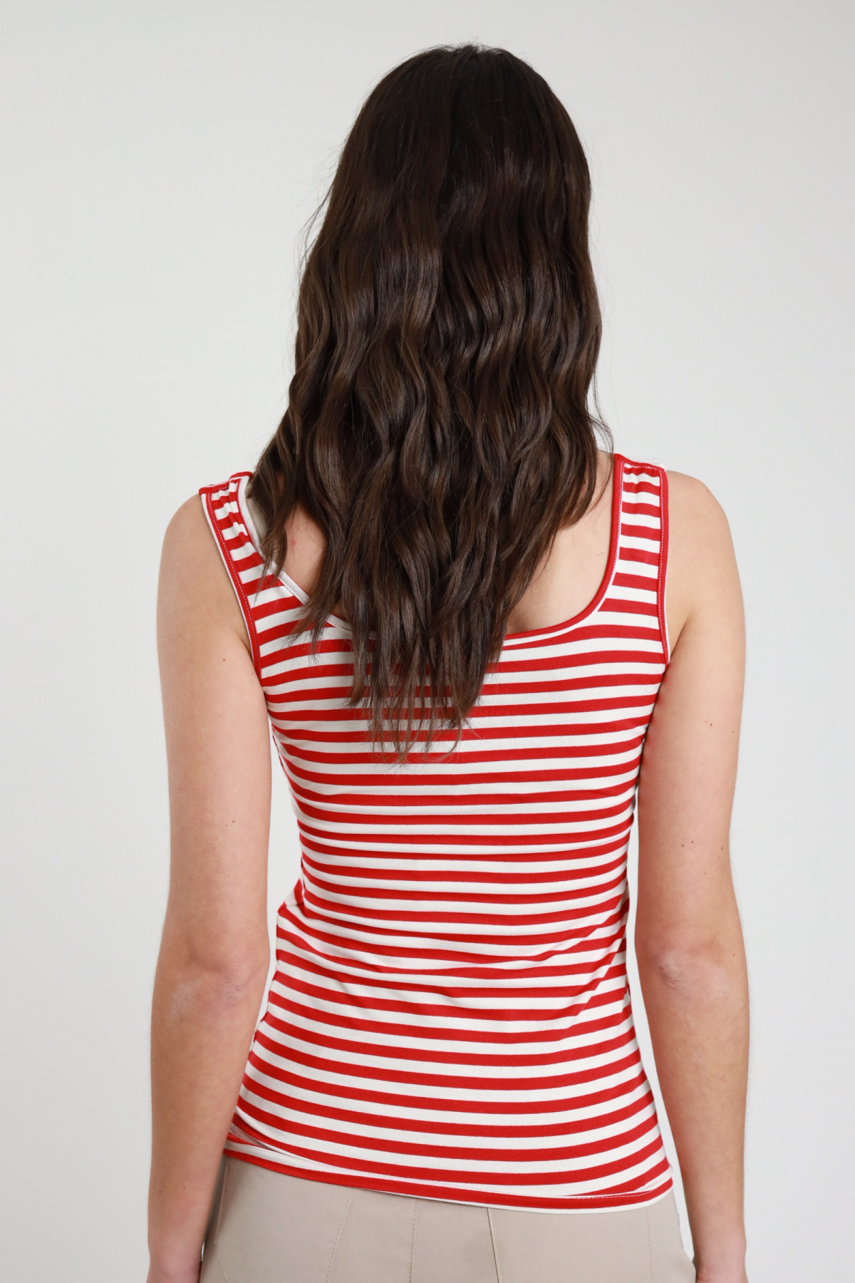 T-Shirt Crop in Cotone Elasticizzato, Girocollo Smanicata con Applicazione Frange e Nappine sulle Maniche.