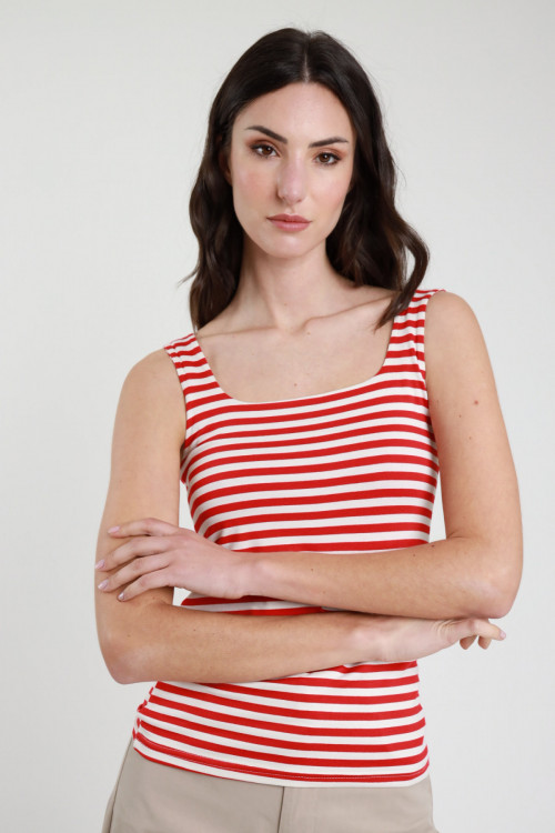 Top Crop Smanicato Asimmetrico con Ripresa sotto il Seno e Pizzo Applicato sul Giromanica.