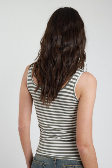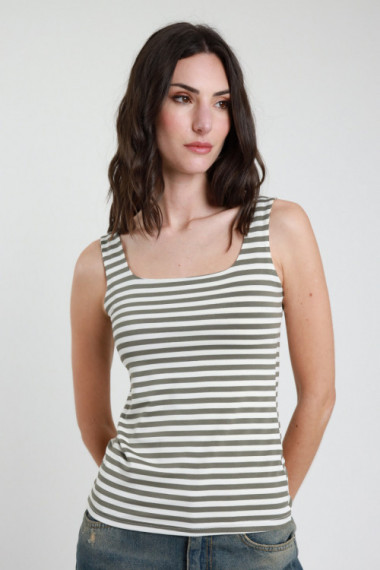 Top Crop Smanicato Asimmetrico con Ripresa sotto il Seno e Pizzo Applicato sul Giromanica.