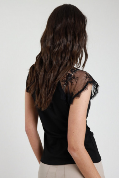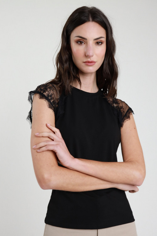 Maglietta c/pizzo 95%co 5%ea+100%pa