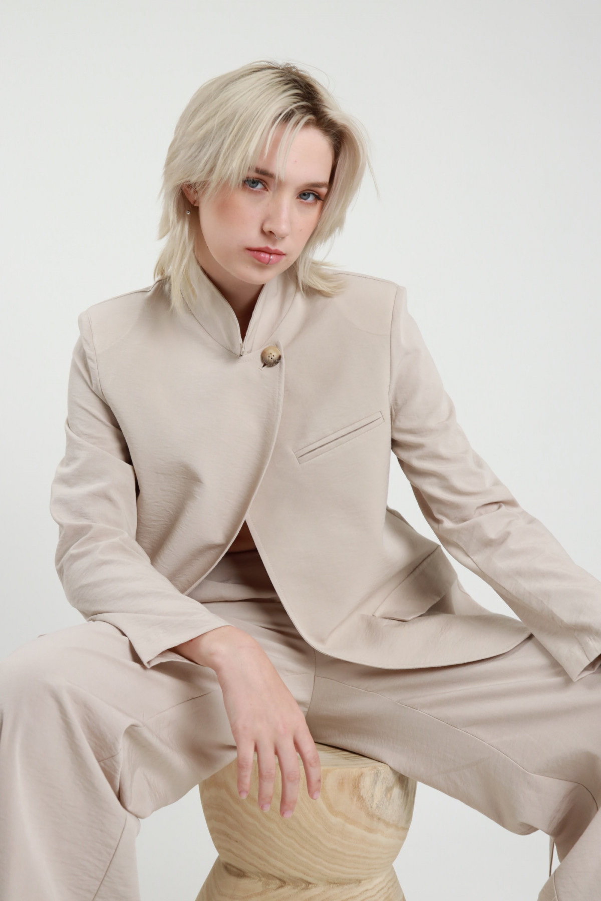 Crop-Jacke mit Hahnentrittmuster, Crossover-Verschluss am Kragen, 1 Knopf, Fake-Taschen mit Patte. 89%PL 11%EA+100%PL