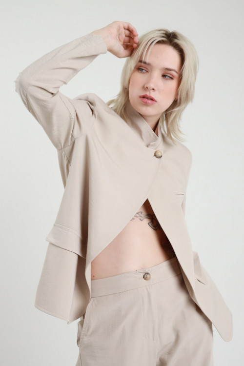 Übergroße Jacke aus Stretch-Baumwolle mit Seitenbändern. 98 % CO 2 % Stück
