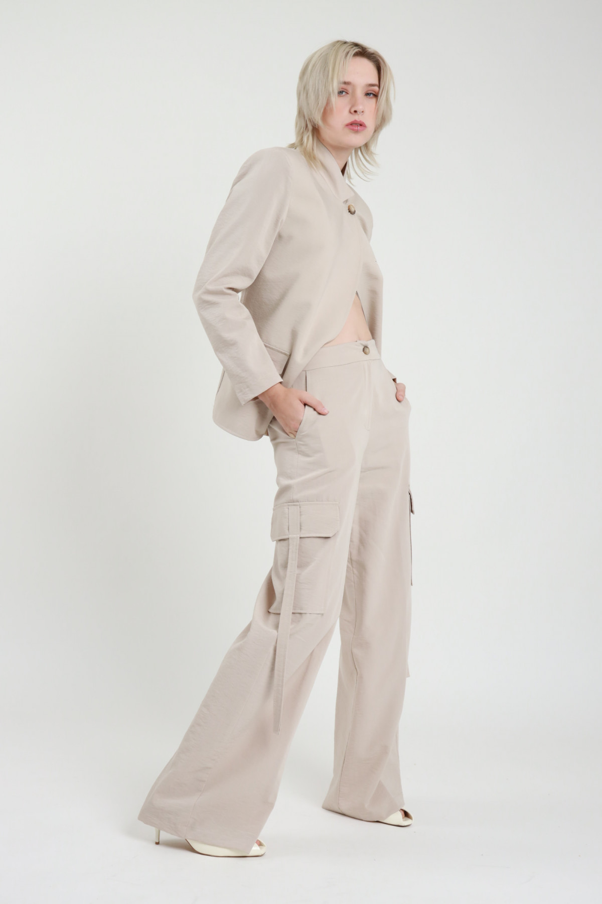 Bananenhose mit großen Taschen, Reißverschluss und Knopfverschluss und Taillengürtel. 100 % co