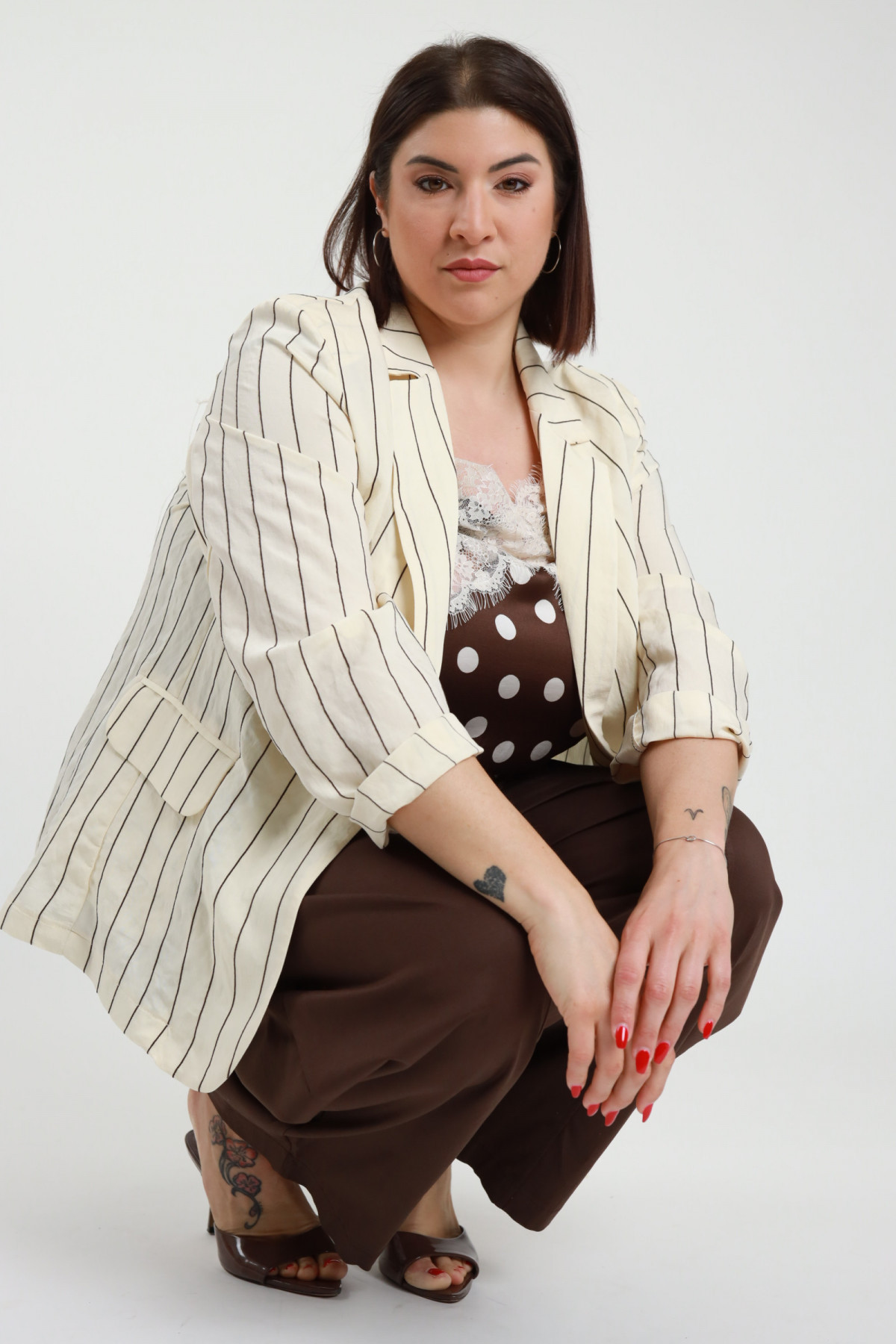Blazer Monopetto Maniche Corte con Ricami, Tasche Filetto con Pattina - Linea Curvy Susy Star.