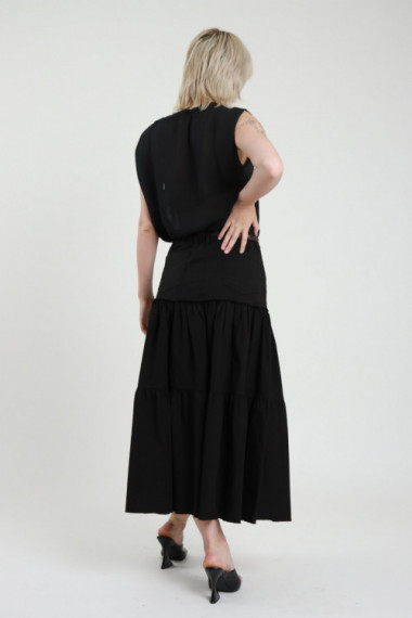 Langer, halbtransparenter Rock mit eingearbeiteter Culotte und elastischem Bund. 69 % vi 31 % pl + 95 % vi 5 % ea