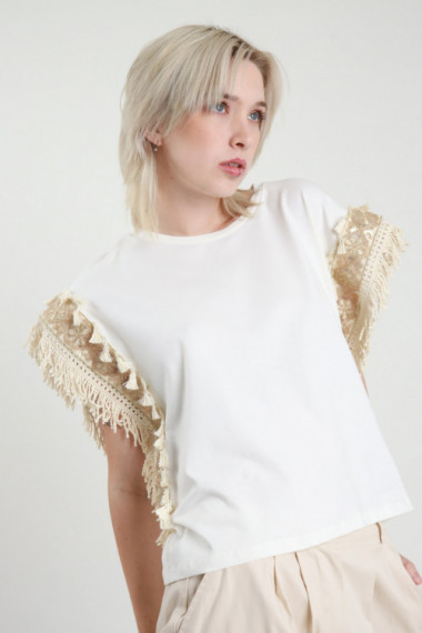 Übergroßes T-Shirt mit Lurex-Einsätzen am Ärmelrand und am Hals. 94 %vi 6 %ea