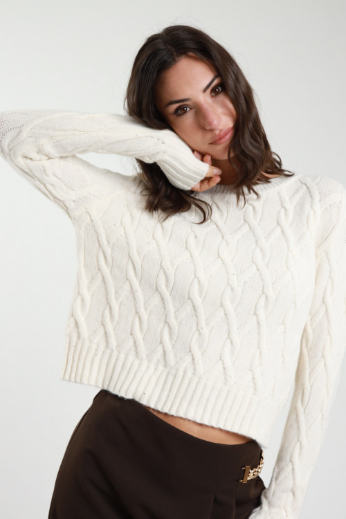 Maglioncino Gircollo con Trecce e Paillettes. Orli a Coste. Slim Fit.