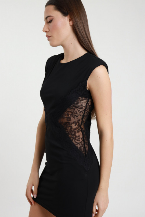 Short dress, short sleeves with rhinestone applications on the shoulders. 65%VI 35%NY