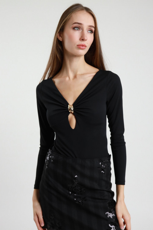 Maglia Girocollo Maniche Lunghe con Retro Cut Out in Pizzo e Fiocchi.