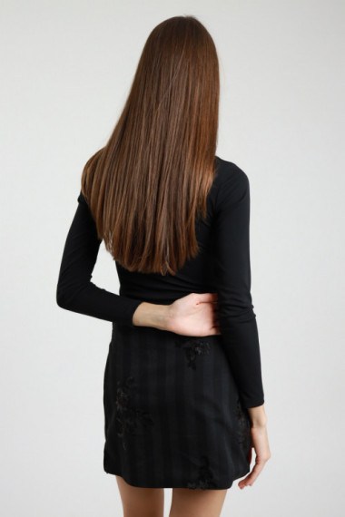 Pinstripe Mini Skirt with Sequined Flowers and Concealed Zip Closure. 34%pl 34%vi 2%ea