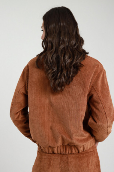 Velvet Bomber Jacket with Button Closure, Collar and Two Large Front Pockets.  85%pl 12%pa 3%ea+100%pa