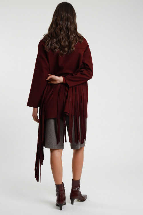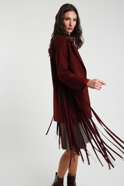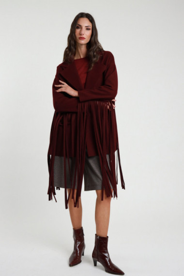 Short Over Coat with Fringes on the Sleeves. Classic lapel, single button closure. 100%pl