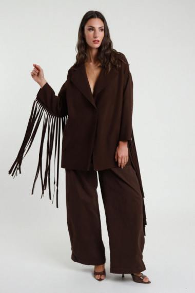 Short Over Coat with Fringes on the Sleeves. Classic lapel, single button closure. 100%pl
