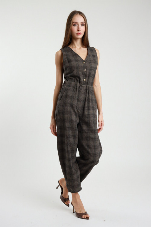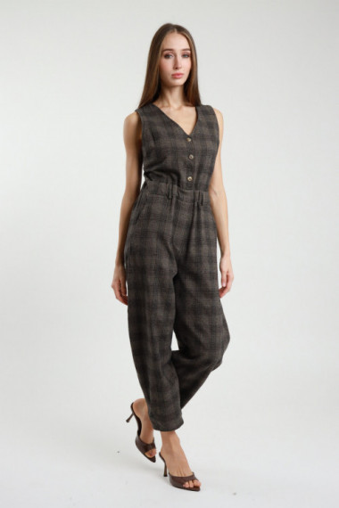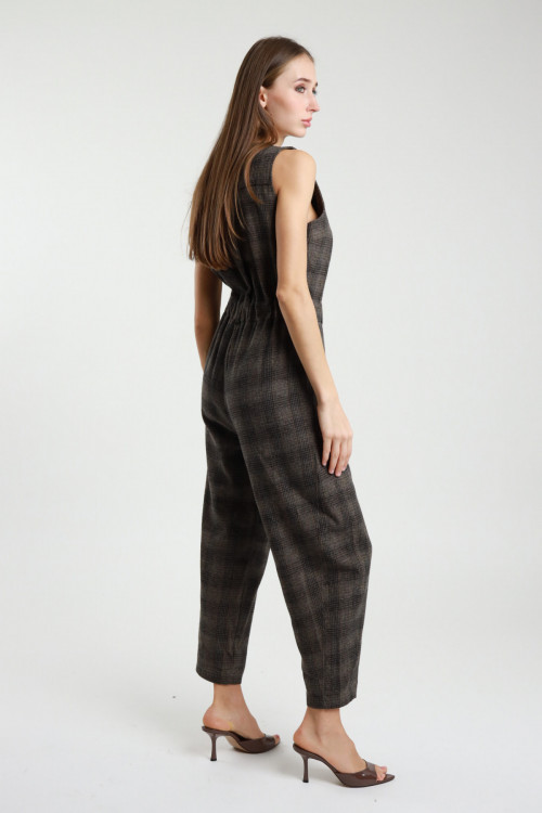 Check tracksuit, sleeveless with elastic waist.  70%co 25%pl 5%af