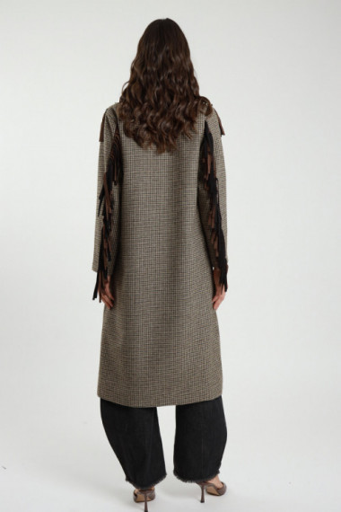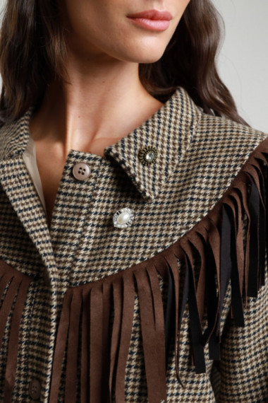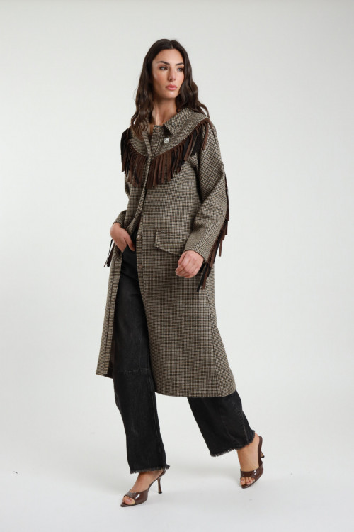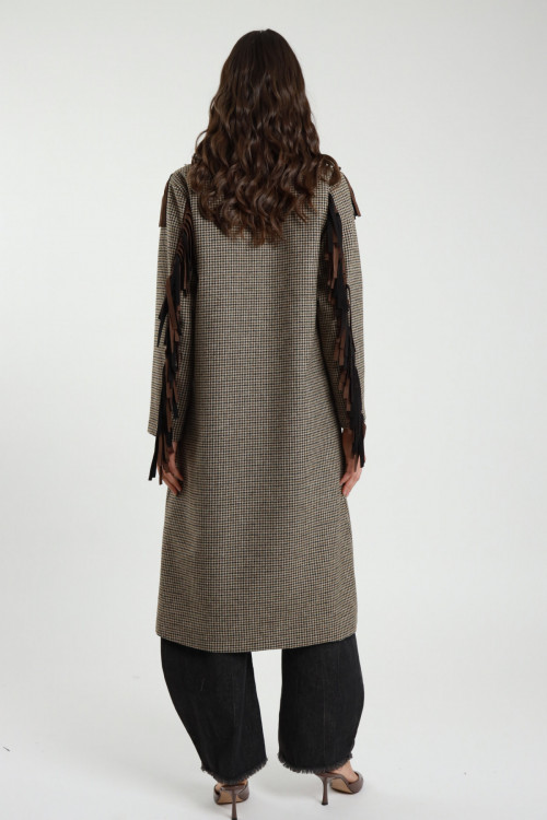Cappotto Corto Over con Frange sulle Maniche. Rever Classico, Chiusura Monobottone.