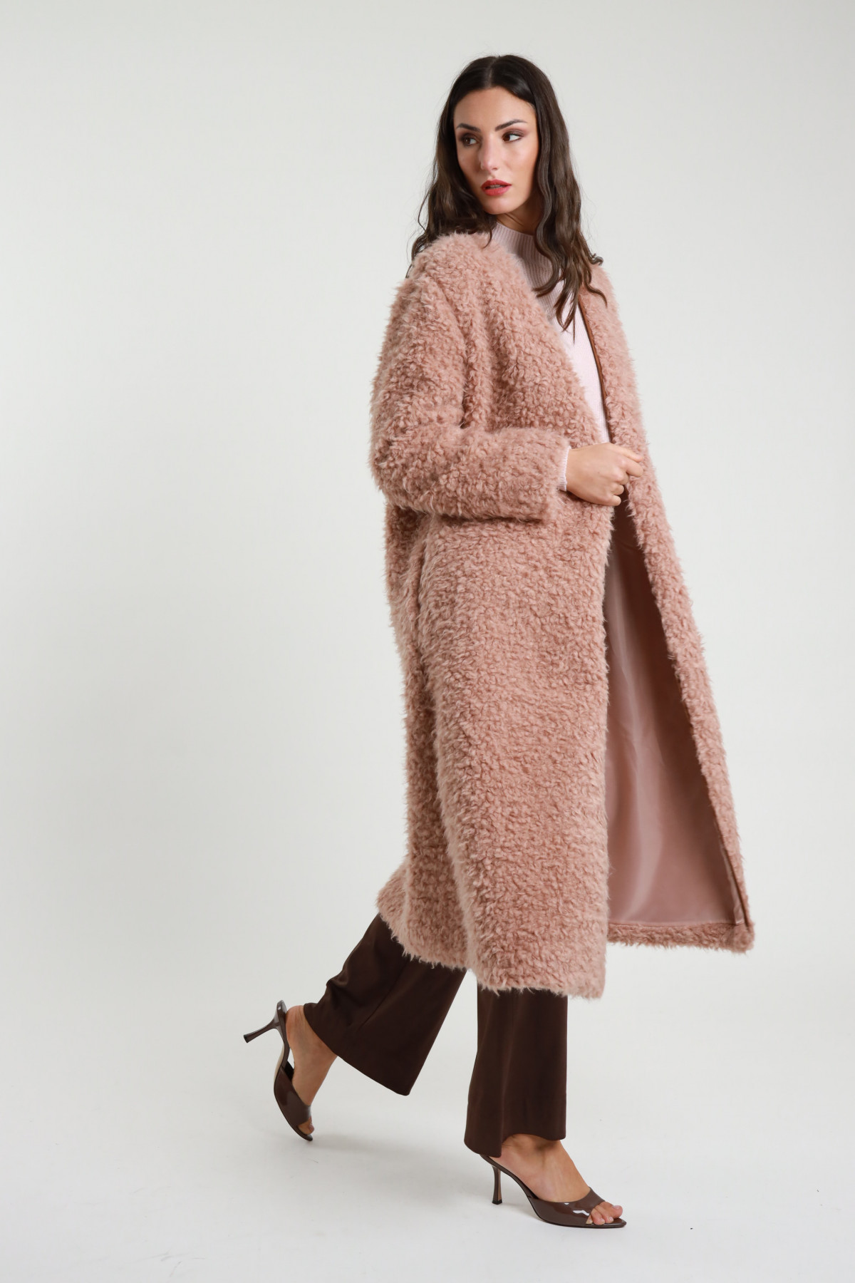 Long Coat in Eco Fur with Side Pockets. 100%pl