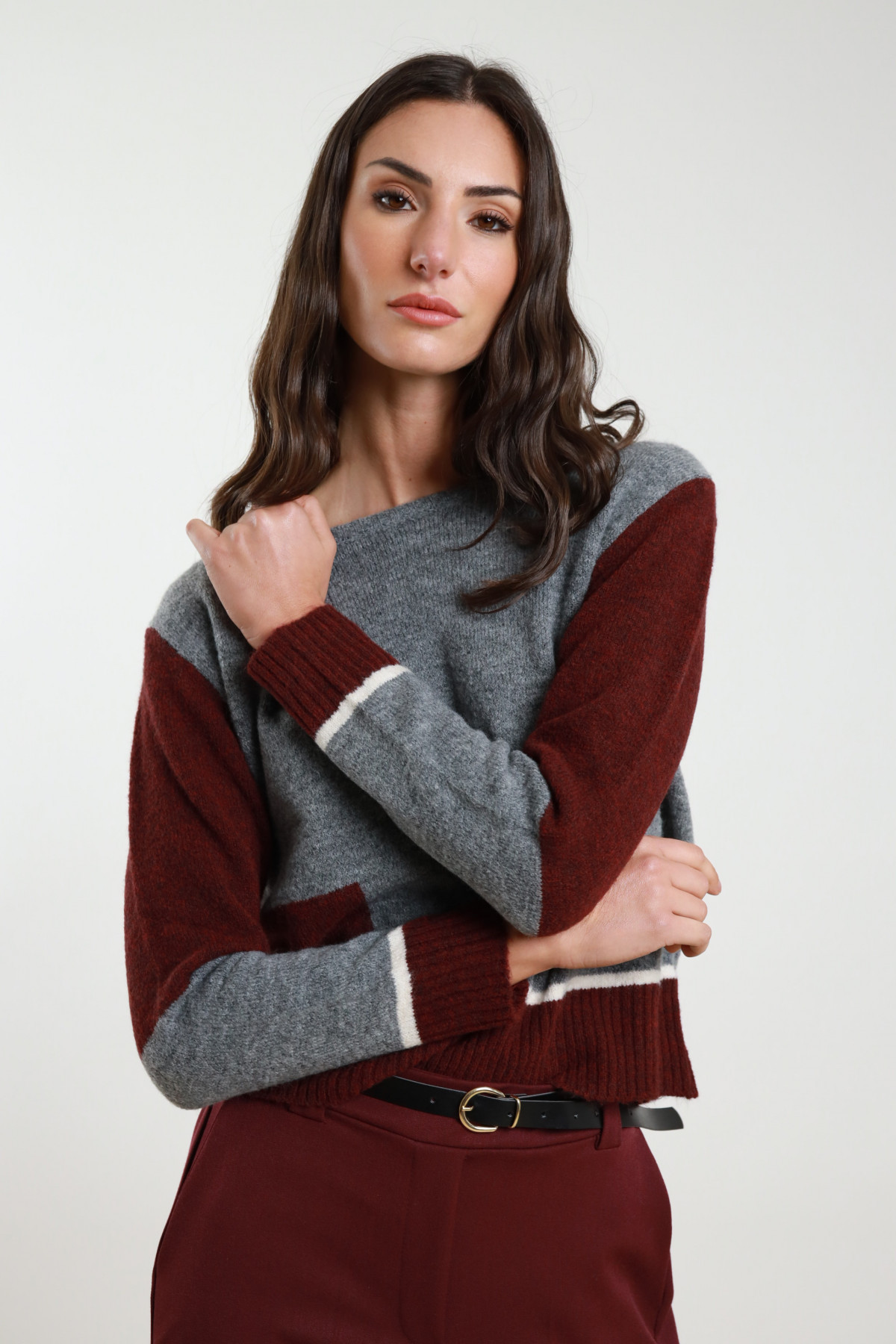 Maglia Multicolor Scollo a Barchetta con Inserti a Costine.