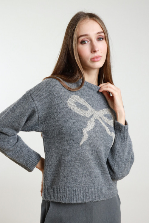 Crewneck sweater with bow in Lurex. 52%pc 27%pa 13%vi 7%wo 1%pl
