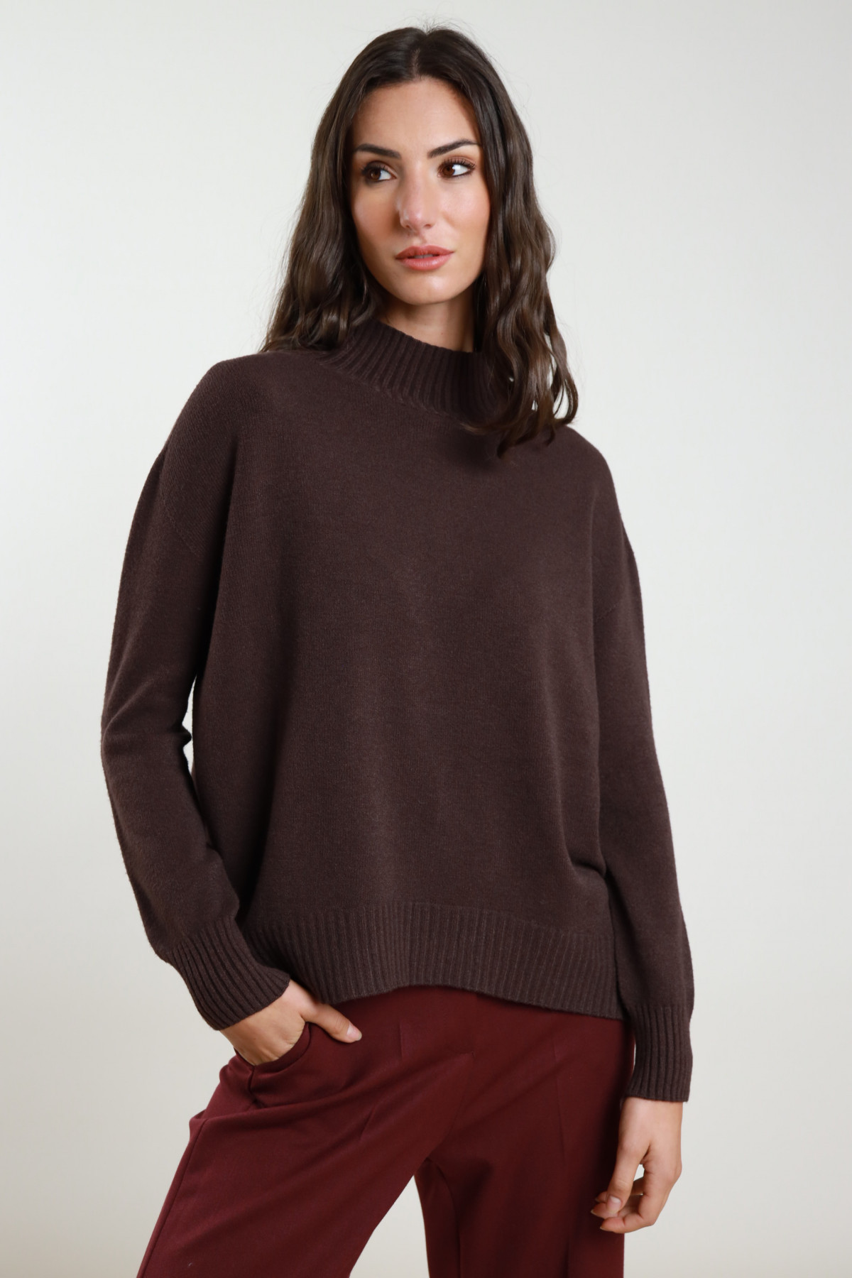 Crater neckline sweater with ribbed hems. 50%vi 27%pl 23%pa