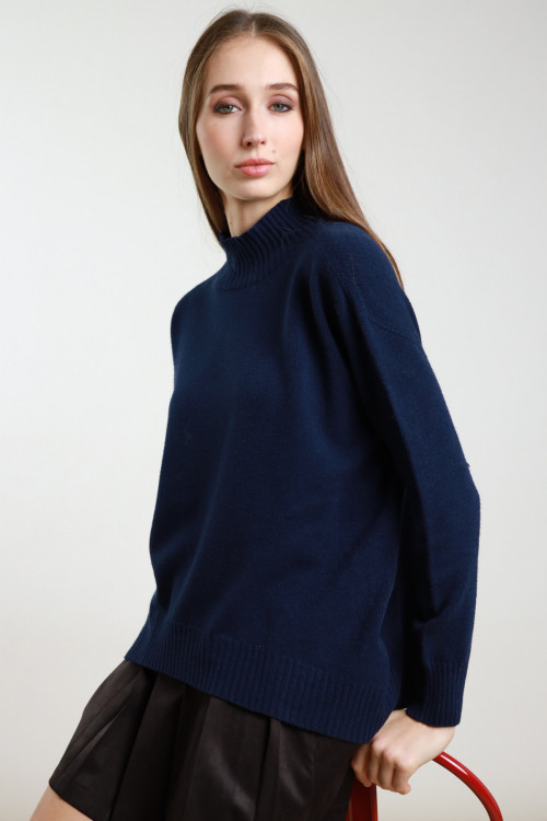 Crater neckline sweater with ribbed hems. 50%vi 27%pl 23%pa