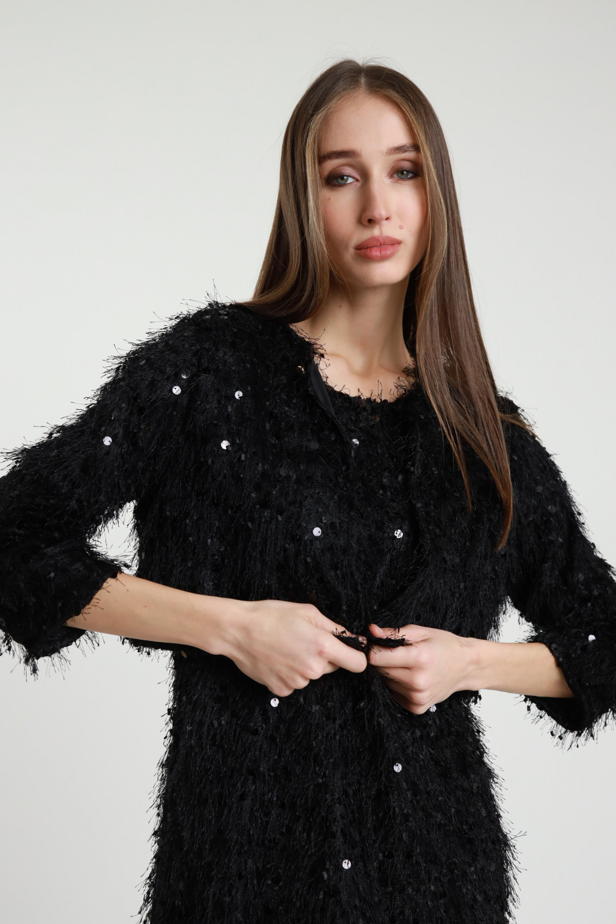 Giacca Corta Spinata con Collo in Ecopelliccia Removibile.