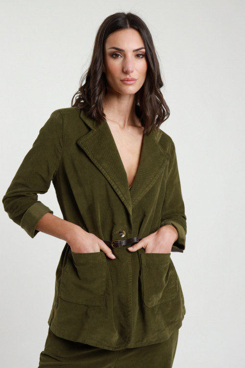 Blazer Monopetto Chiusura 3 Bottoni con Dettaglio Frange sul Rever e sulle Maniche, Tasche Filetto con Pattina.