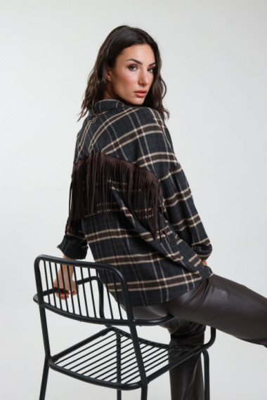 Camicia check c/frangia dt 42%pl 30%vi 28%co