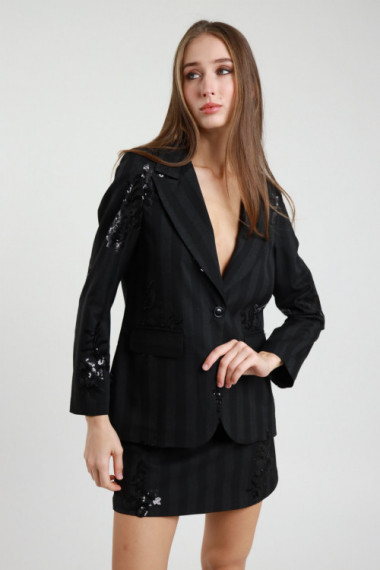 Pinstripe Jacket with Sequin Flower Embroidery. 34%pl 34%vi 2%ea