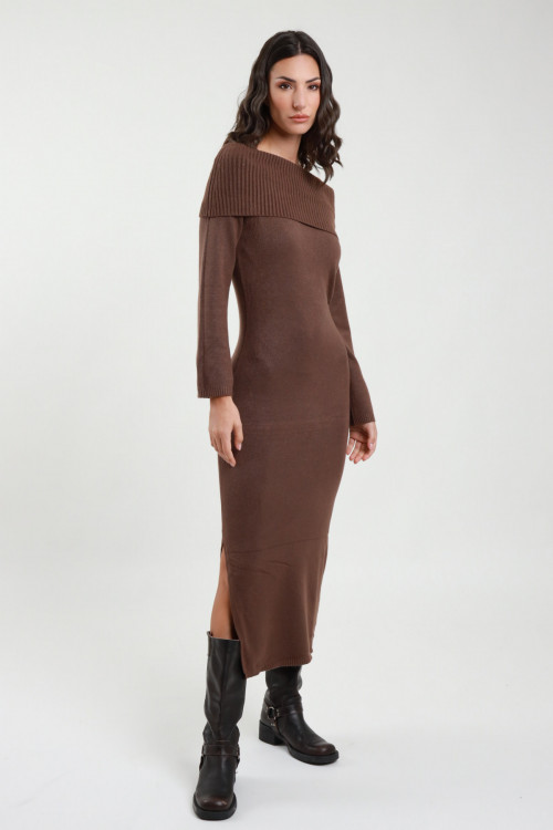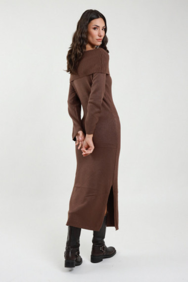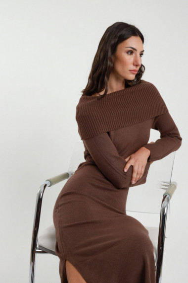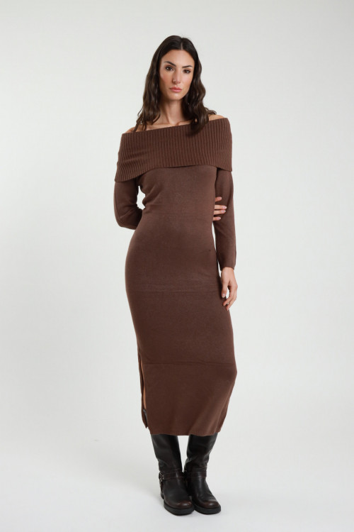 Long Shiffer neckline dress with side slits. 63%vi 37%ny